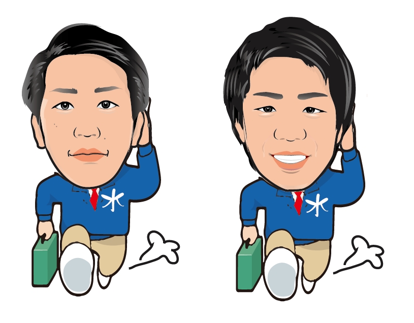 スパナを持って「お任せ下さい!」という元気な似顔絵です。