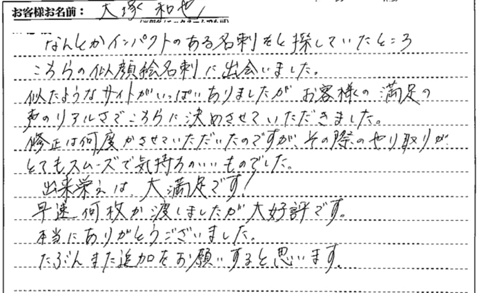 「本当にそっくりで良い名刺が出来ました!」