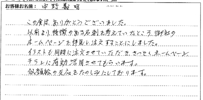 「HPや広告に似顔絵を使いたいなぁ。」と思っていましたが、似てないと困るし、あまり誇張されたのも困るけど、いい所あるかな?とネット検索していて御社に行き当たりました。