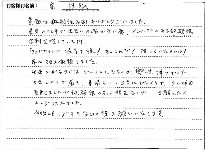 「名刺を渡した瞬間にお客様から反応を頂き上々です」