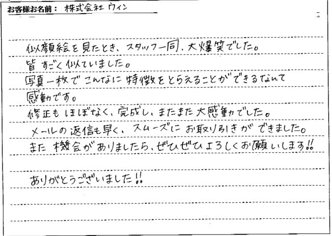 「似顔絵を見た時、スタッフ一同、大爆笑でした」