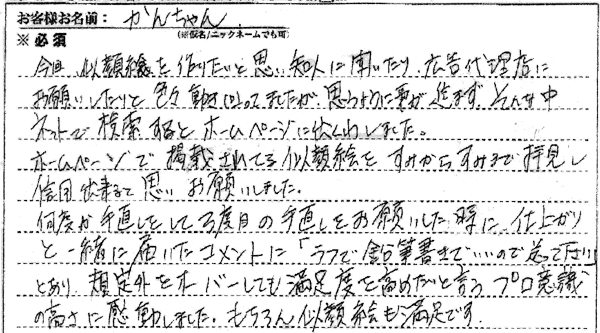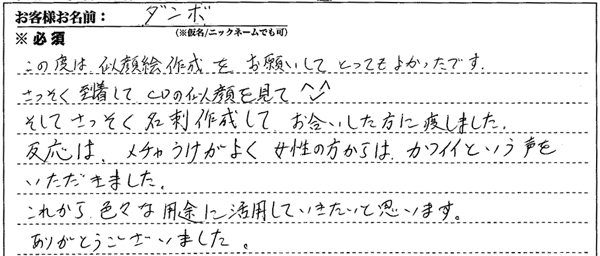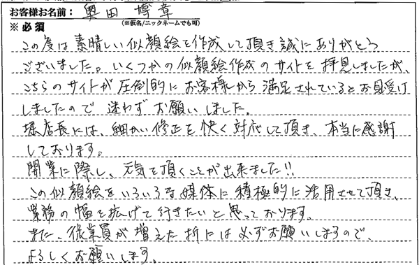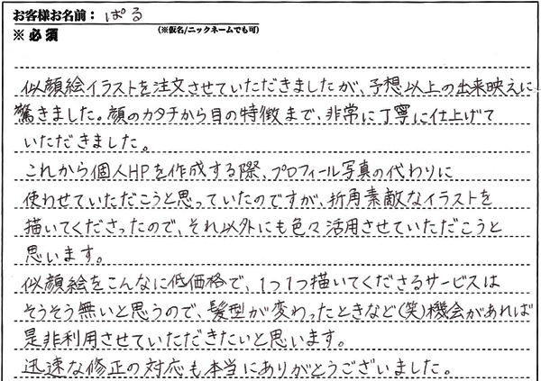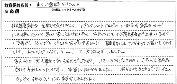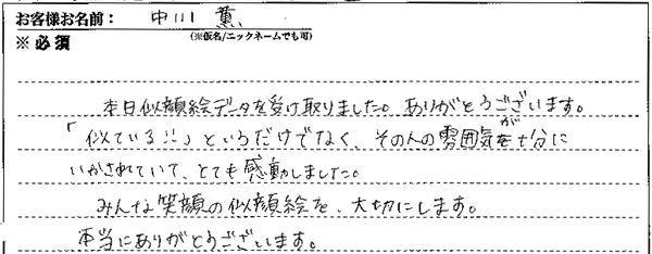 「プロ意識の高さに感動しました。もちろん似顔絵も満足です。」