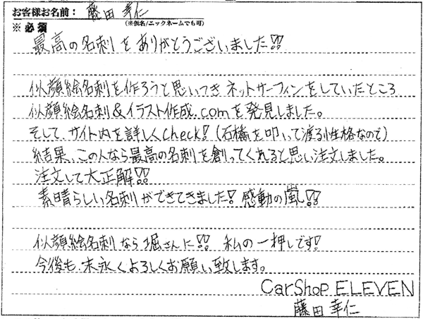 「似顔絵イラストに決めた事で、思い通りの名刺が出来ました」