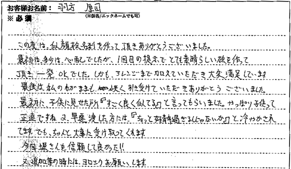 お子様に「良く似ている」とのお言葉をいただき、大変嬉しく思います。