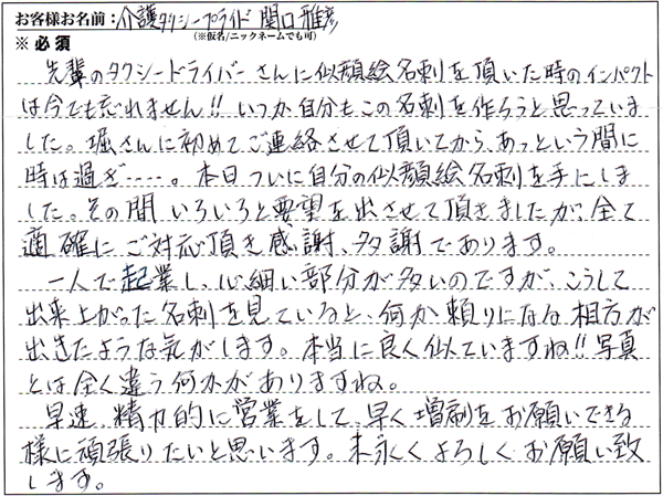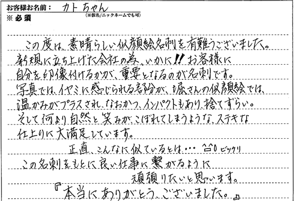 駒沢様の起業に似顔絵名刺がお役に立てて大変嬉しく思います。