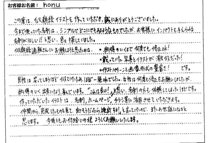 「本当にそっくりで良い名刺が出来ました!」