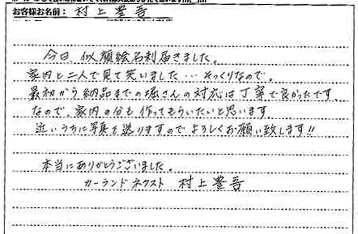 日本全国から、当店をご利用されたお客様より頂いた"生のお声"を掲載させて頂きました。