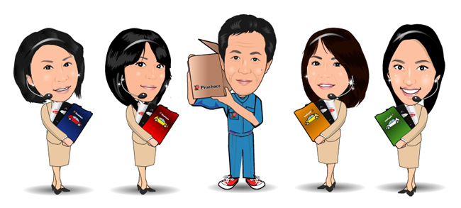 最初は車検証入れに似顔絵を入れようと考えました。 と言いますのも、お客様から「車検証に似顔絵イラストを入れれないか?」と言うご要望が御座いました。 きっかけと言えばそれが最初です。それで、御社のホームページを見つけました。 それで、勝手に連想して、スタッフの似顔絵も描いてもらおう!と言うふうに考えました。