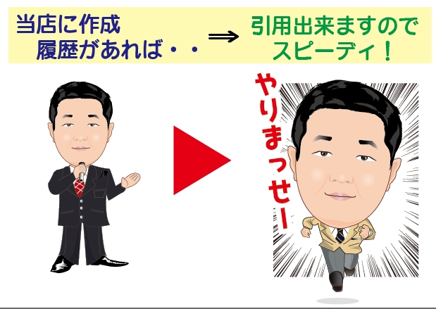 過去に当店をご利用頂いて似顔絵や似顔絵名刺を作成した実績があるお客様の場合