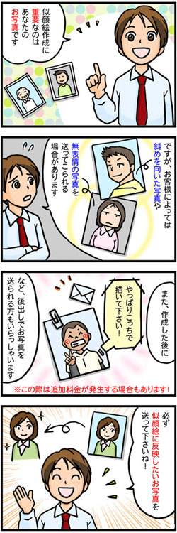 お客様の大切な似顔絵用のお写真ですので、是非より良いお写真をご用意下さいませ。